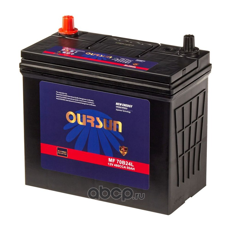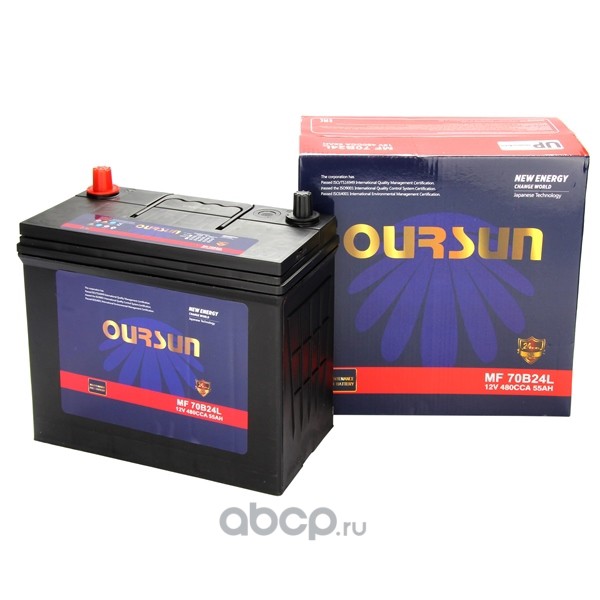 | OURSUN | MF70B24L | Батарея аккумуляторная 55А/ч 480А обратная полярн. онкие вынос. (Азия) клеммы | ||