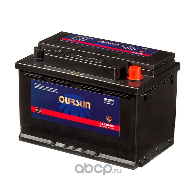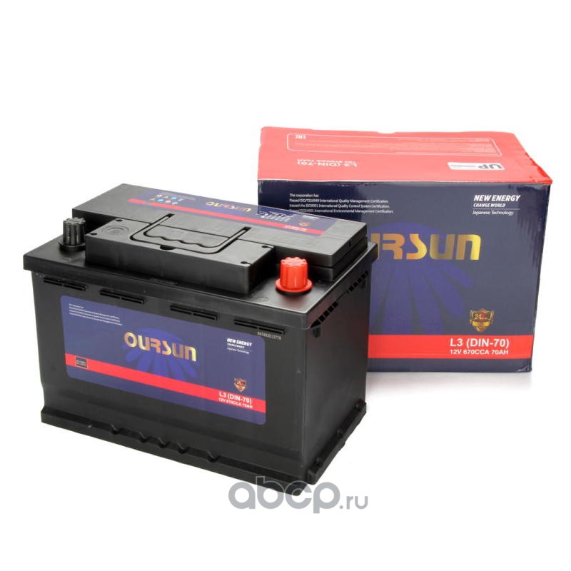| OURSUN | L3DIN70 | Батарея аккумуляторная 70А/ч 670А обратная полярн. стандартные (Европа) клеммы | ||