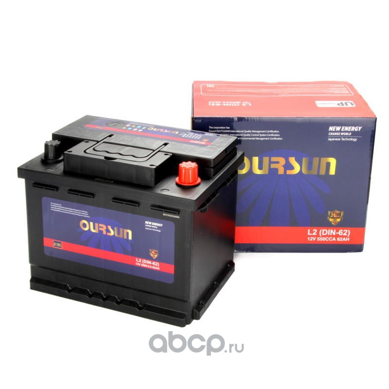 | OURSUN | L2DIN62 | Батарея аккумуляторная 62А/ч 550А обратная полярн. стандартные (Европа) клеммы | ||