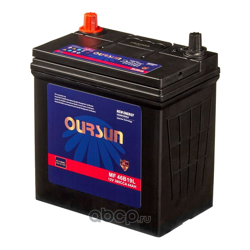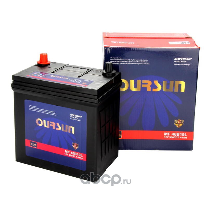 | OURSUN | MF46B19L | Батарея аккумуляторная 44А/ч 380А обратная полярн. тонкие вынос. (Азия) клеммы | ||