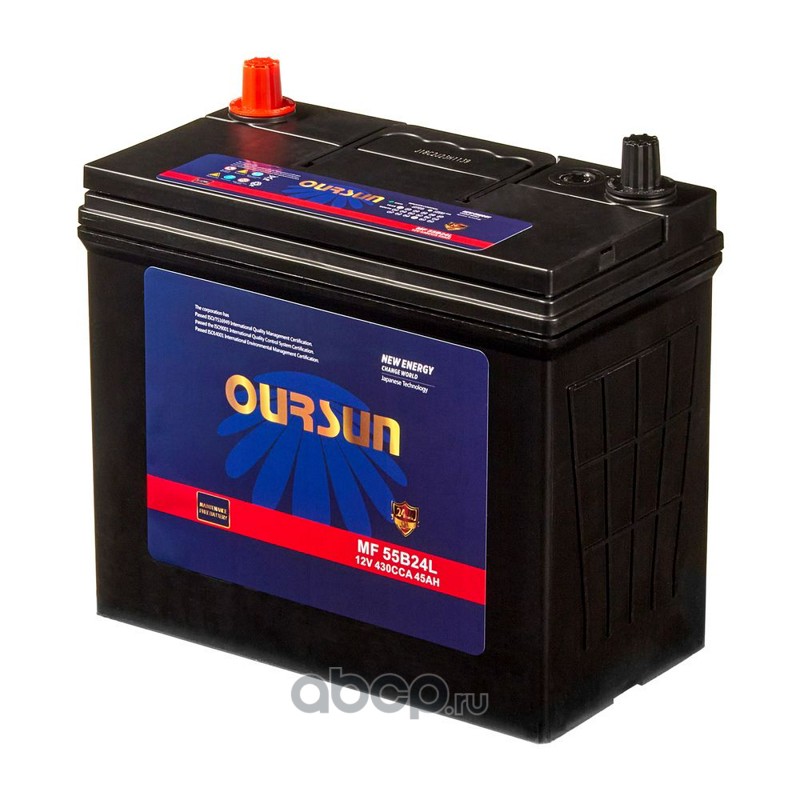 | OURSUN | MF55B24L | Батарея аккумуляторная 45А/ч 430А обратная полярн. онкие вынос. (Азия) клеммы | ||