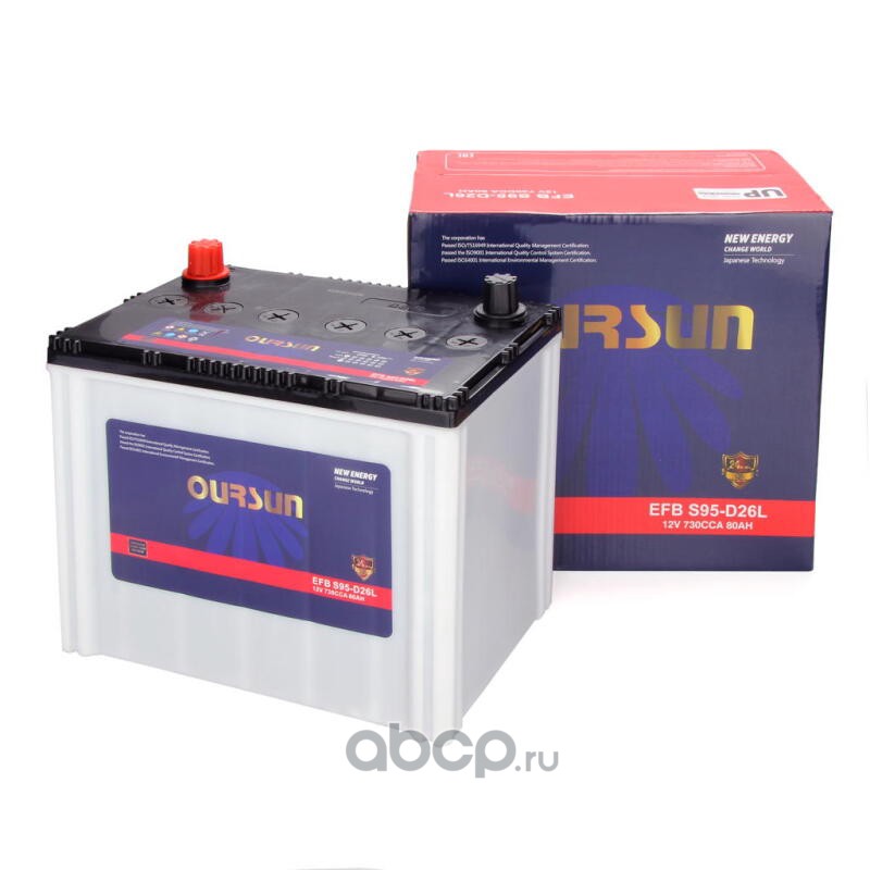 | OURSUN | S95D26L | Батарея аккумуляторная 80А/ч 730А обратная полярн. стандартные (Европа) клеммы | ||