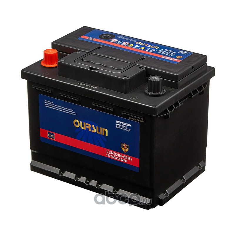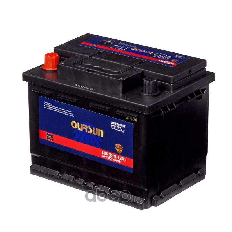 | OURSUN | L2RDIN62R | Батарея аккумуляторная 62А/ч 550А прямая полярн. стандартные (Европа) клеммы | ||