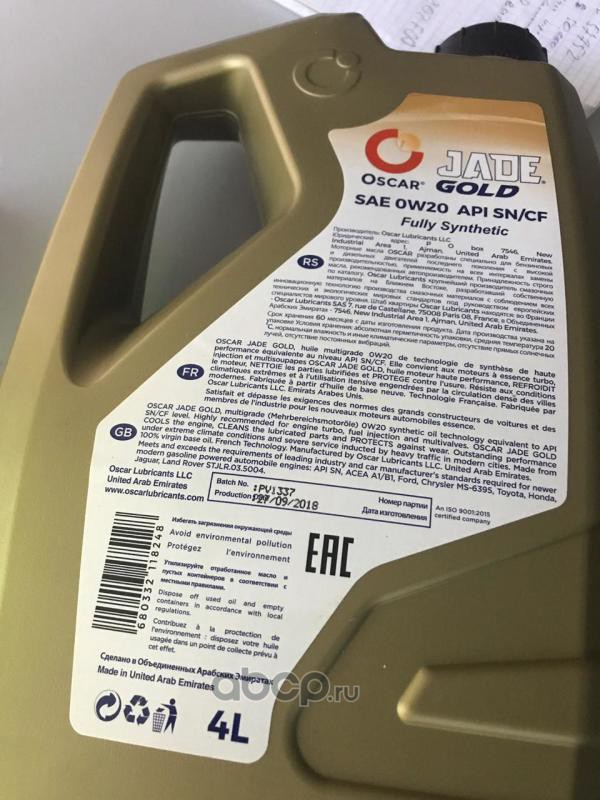 | Oscar | 680332118248 | Масло моторное синтетика Oscar Jade Gold 0W-20 4 л. | ||
