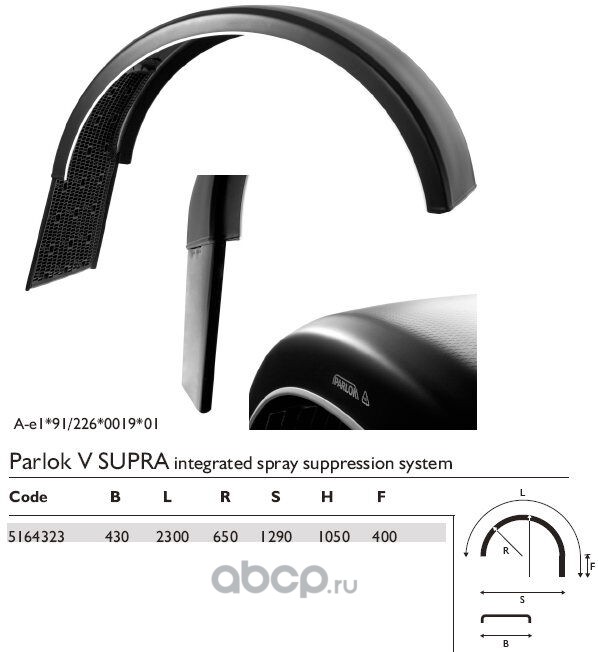 | PARLOK | 5166823 | Крыло PARLOK 680x2300 R630 с брызговиком SUPRA (заменен на 102240) | ||