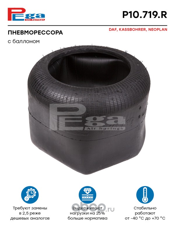 | PEGA | P10719R | Пневморессора DAF, KASSBOHRER, NEOPLAN о.н. (P10.719.R, 190008) | ||