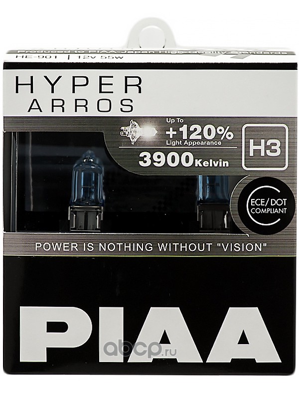 | PIAA | HE901H3 | Лампы галогенные PIAA HYPER ARROS (H3) 3900K 55W (2 шт) Светоотдача +120% | ||
