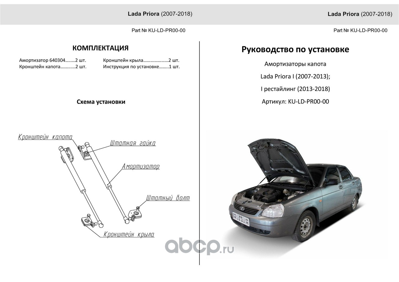PNEUMATIC | KULDGRFL00 | Lada Granta FL 2018- комплект упоров капота, KU-LD-GRFL-00, Pneumatic | ||