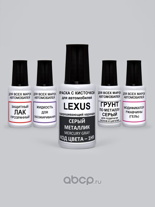 Подкраска Mercury Gray, Серый металлик 1H9 Toyota-Lexus Краска 20 мл + Лак 15 мл с кисточкой от сколов и царапин
