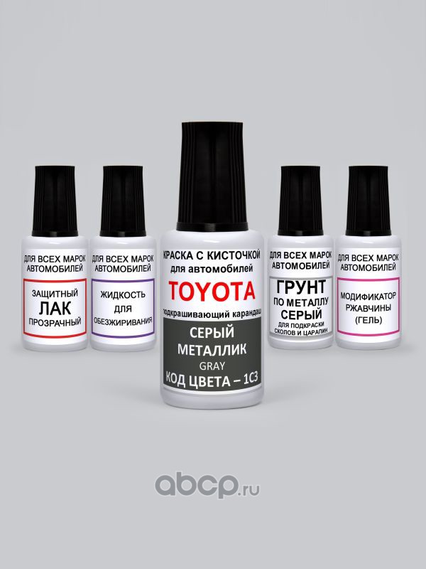 Подкраска Gray, Серый металлик 1C3 Toyota-Lexus Краска 20 мл + Лак 15 мл с кисточкой от сколов и царапин