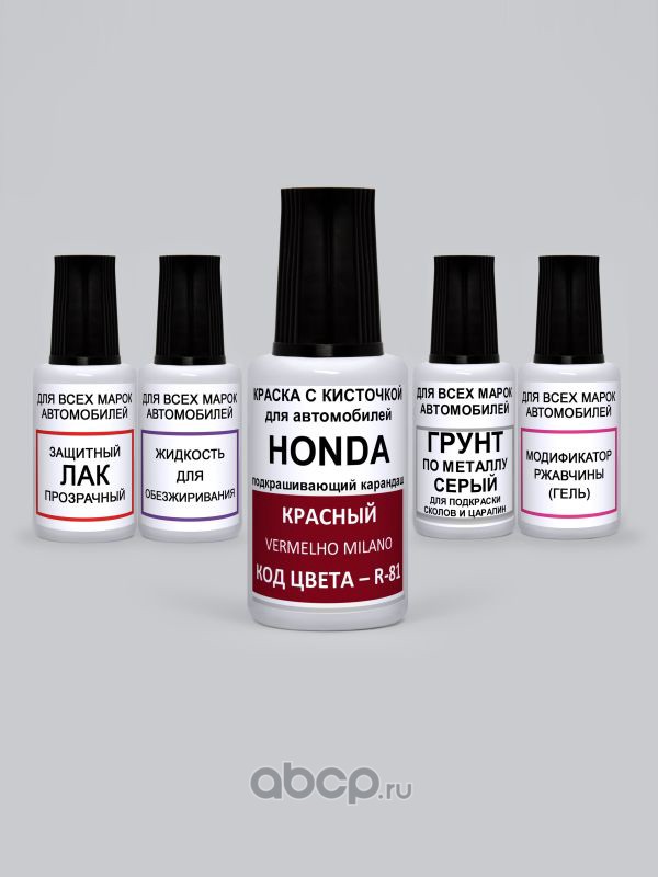 Подкраска Vermelho Milano, Красный R-81 Honda Краска 20 мл + Лак 15 мл с кисточкой от сколов и царапин