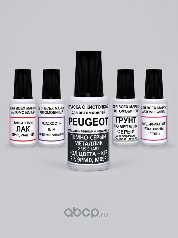 Подкраска Gris Shark, Темно-серый металлик KTP Peugeot Краска 20 мл + Лак 15 мл с кисточкой от сколов и царапин