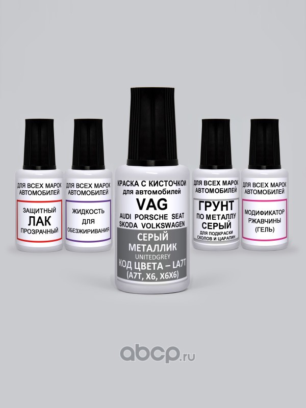 Подкраска Unitedgrey, Серый металлик LA7T VAG (Volkswagen, Skoda, Audi, Porsche, Seat) Краска 20 мл + Лак 15 мл с кисточкой от сколов и царапин