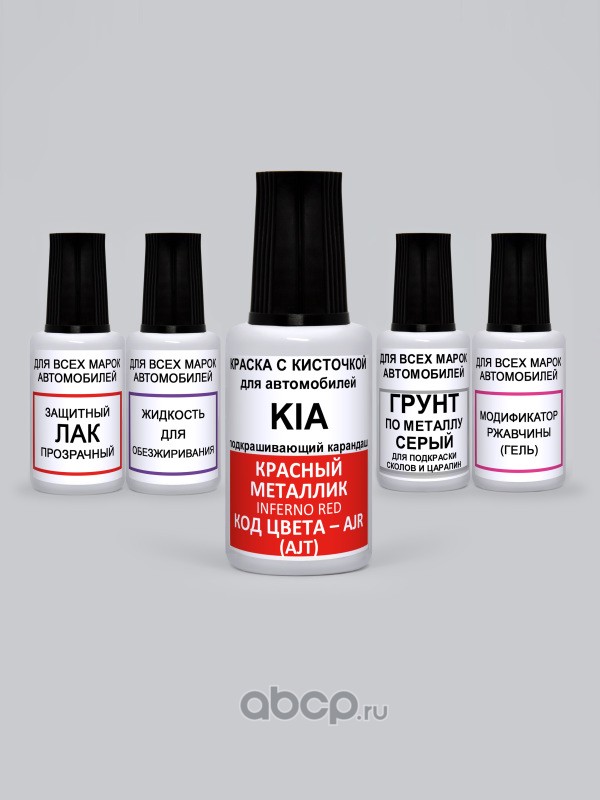 Подкраска Inferno Red, Красный металлик AJR Kia-Hyundai Краска 20 мл + Лак 15 мл с кисточкой от сколов и царапин