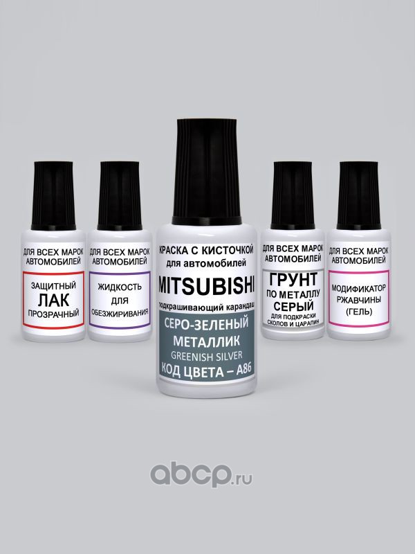 Подкраска Greenish Silver, Серо-зеленый металлик A86 Mitsubishi Краска 20 мл + Лак 15 мл с кисточкой от сколов и царапин
