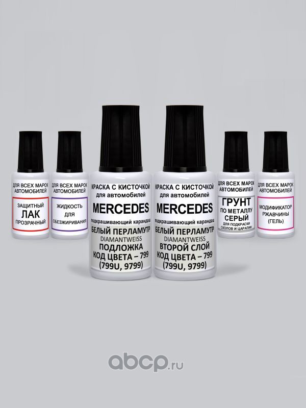 Подкраска Diamantweiss, Белый перламутр 799 Mercedes Краска 20 мл + Перламутр 20 мл + Лак 15 мл с кисточкой от сколов и царапин