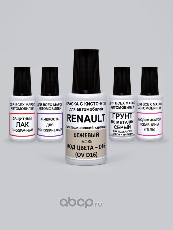 Подкраска Ivore, Бежевый D16 Renault Краска 20 мл + Лак 15 мл с кисточкой от сколов и царапин