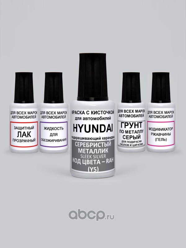 Подкраска Sleek Silver, Серебристый металлик RAH Kia-Hyundai Краска 20 мл + Лак 15 мл с кисточкой от сколов и царапин