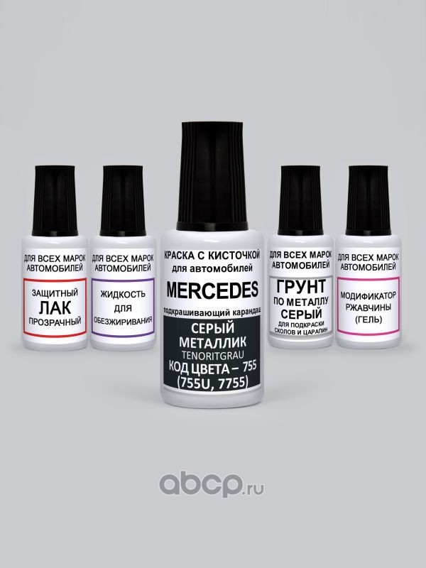 Подкраска Tenoritgrau, Серый металлик 755 Mercedes Краска 20 мл + Лак 15 мл с кисточкой от сколов и царапин