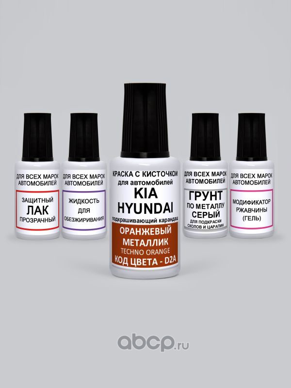 Подкраска Techno Orange, Оранжевый металлик D2A Kia-Hyundai Краска 20 мл + Лак 15 мл с кисточкой от сколов и царапин