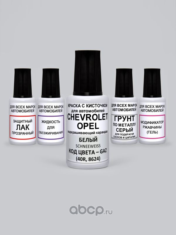 Подкраска Schneeweiss, Белый GAZ Chevrolet Краска 20 мл + Лак 15 мл с кисточкой от сколов и царапин