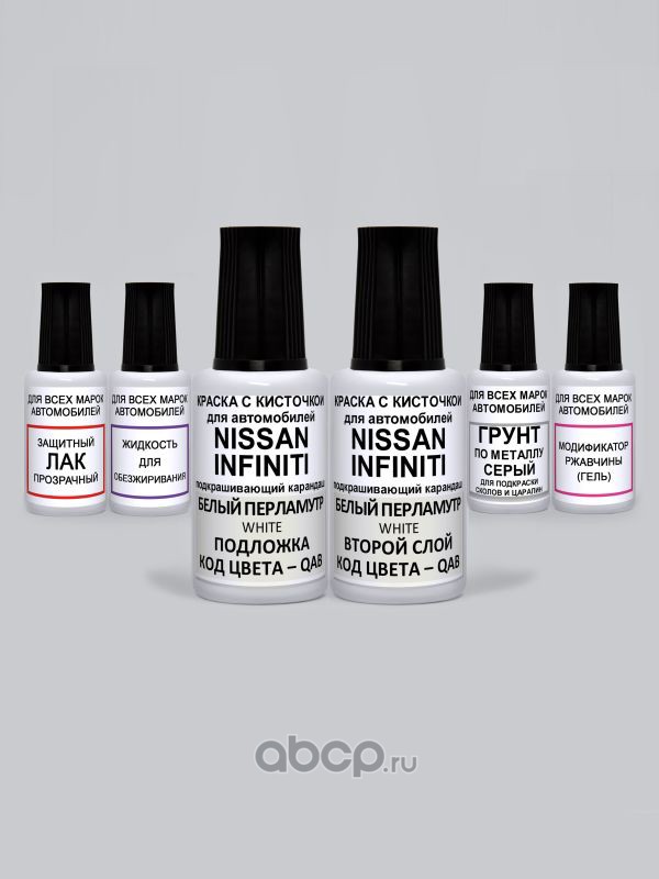 Подкраска White, Белый перламутр QAB Nissan-Infiniti Краска 20 мл + Перламутр 20 мл + Лак 15 мл с кисточкой от сколов и царапин