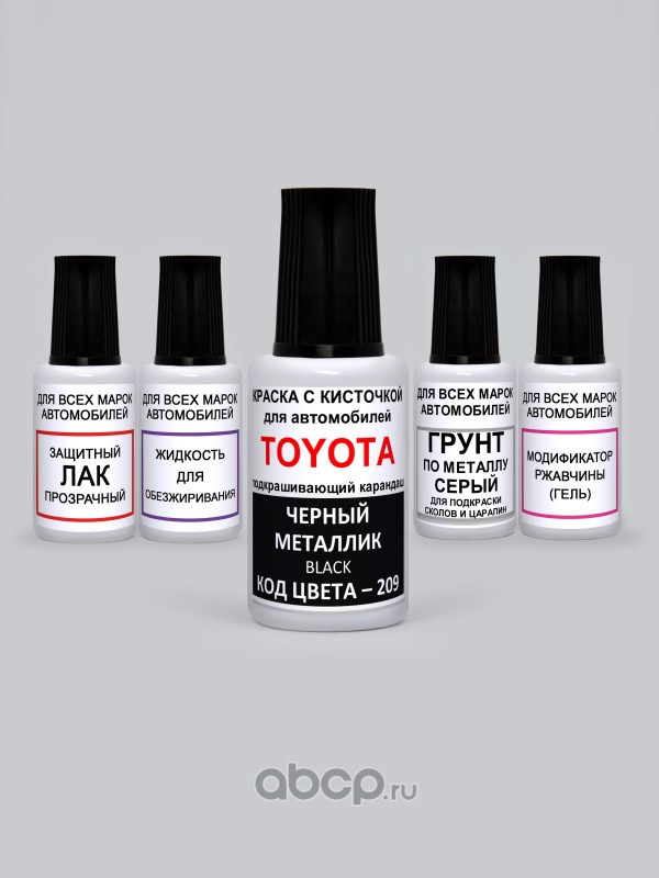 Подкраска Black, Черный металлик 209 Toyota-Lexus Краска 20 мл + Лак 15 мл с кисточкой от сколов и царапин