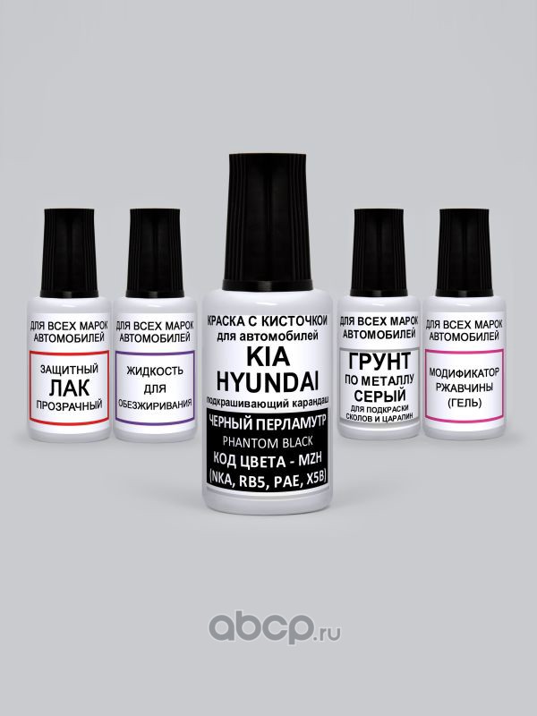 Подкраска Phantom Black, Черный перламутр MZH Kia-Hyundai Краска 20 мл + Лак 15 мл с кисточкой от сколов и царапин