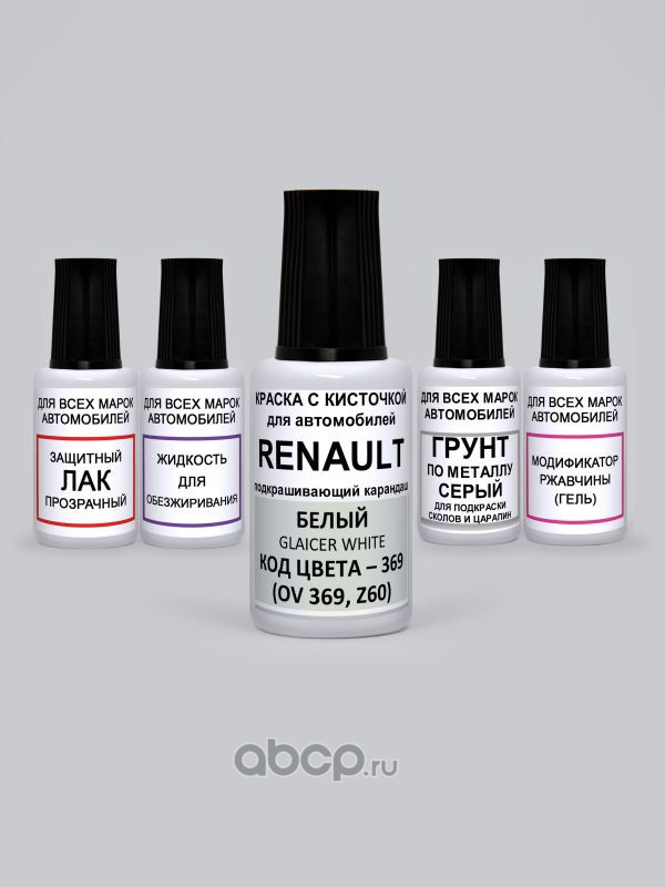 Подкраска Glacier White, Белый 369 Renault Краска 20 мл + Лак 15 мл с кисточкой от сколов и царапин
