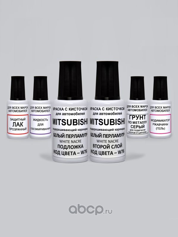 Подкраска White Nacre, Белый перламутр W76 Mitsubishi Краска 20 мл + Перламутр 20 мл + Лак 15 мл с кисточкой от сколов и царапин