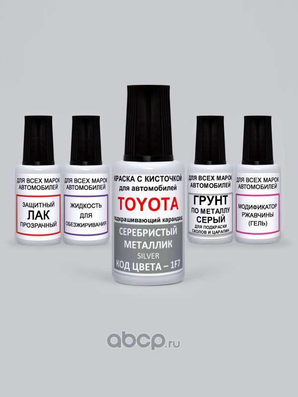 Подкраска Silver, Серебристый металлик 1F7 Toyota-Lexus Краска 20 мл + Лак 15 мл с кисточкой от сколов и царапин