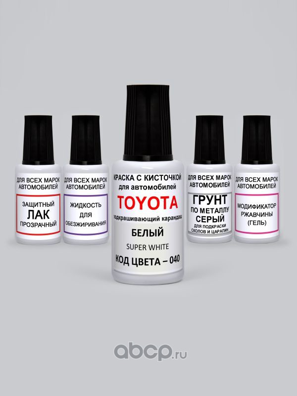 Подкраска Super White, Белый 040 Toyota-Lexus Краска 20 мл + Лак 15 мл с кисточкой от сколов и царапин