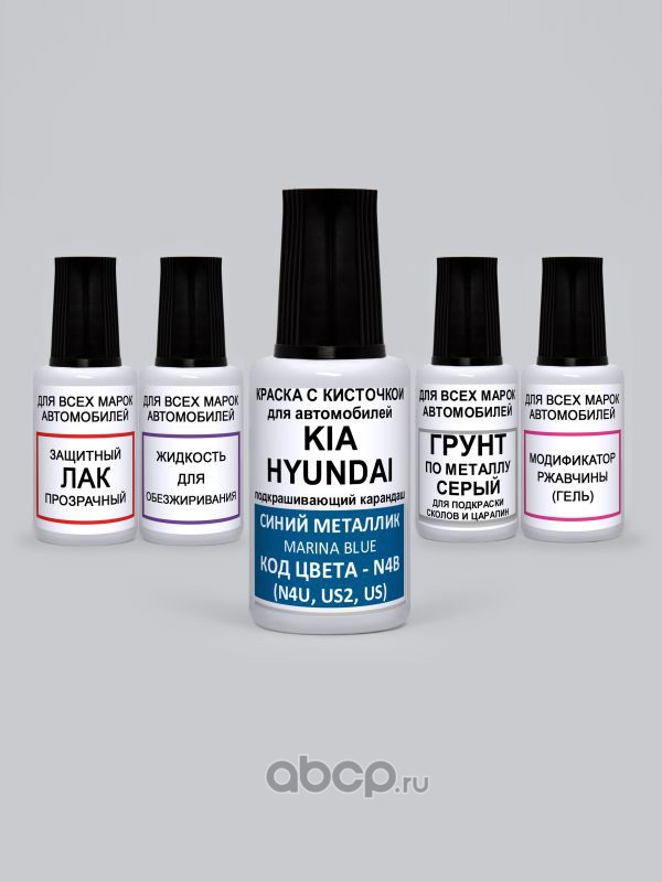 Подкраска Marina Blue, Синий металлик N4B Kia-Hyundai Краска 20 мл + Лак 15 мл с кисточкой от сколов и царапин