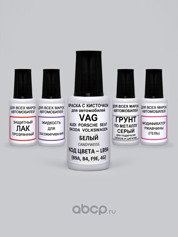 Подкраска Candyweiss, Белый LB9A VAG (Volkswagen, Skoda, Audi, Porsche, Seat) Краска 20 мл + Лак 15 мл с кисточкой от сколов и царапин