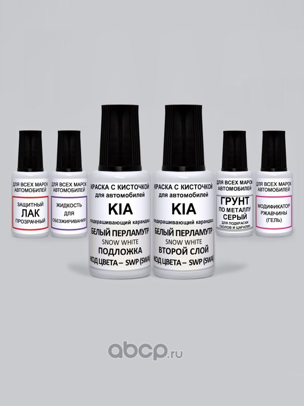 Подкраска Snow White, Белый перламутр SWP Kia-Hyundai Краска 20 мл + Перламутр 20мл + Лак 15 мл с кисточкой от сколов и царапин