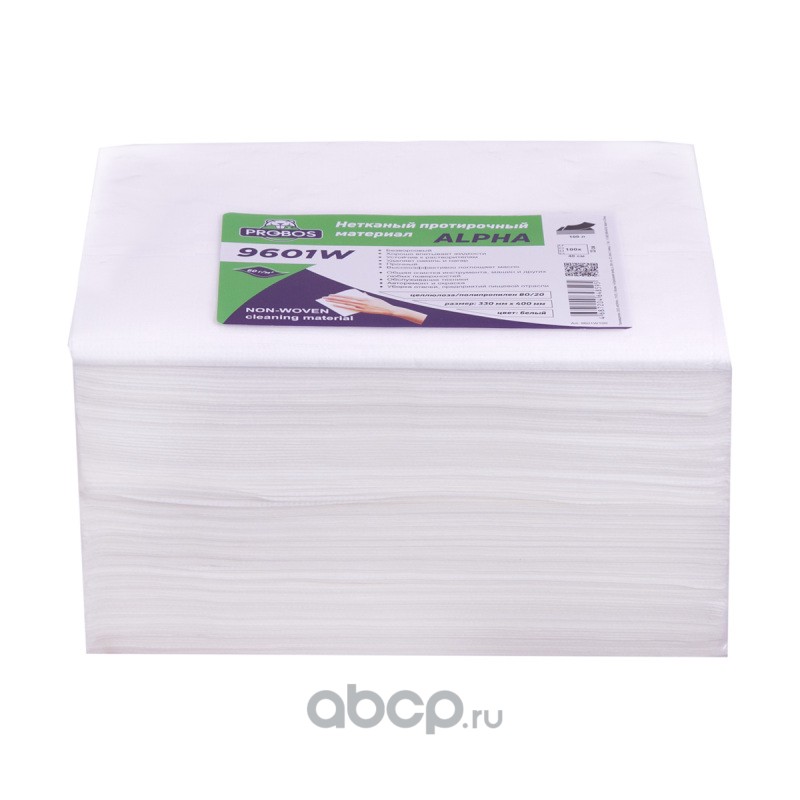 Нетканый протирочный материал ALPHA 9601W, 60г/м2, белый, 33х40см, 100 листов в упаковке