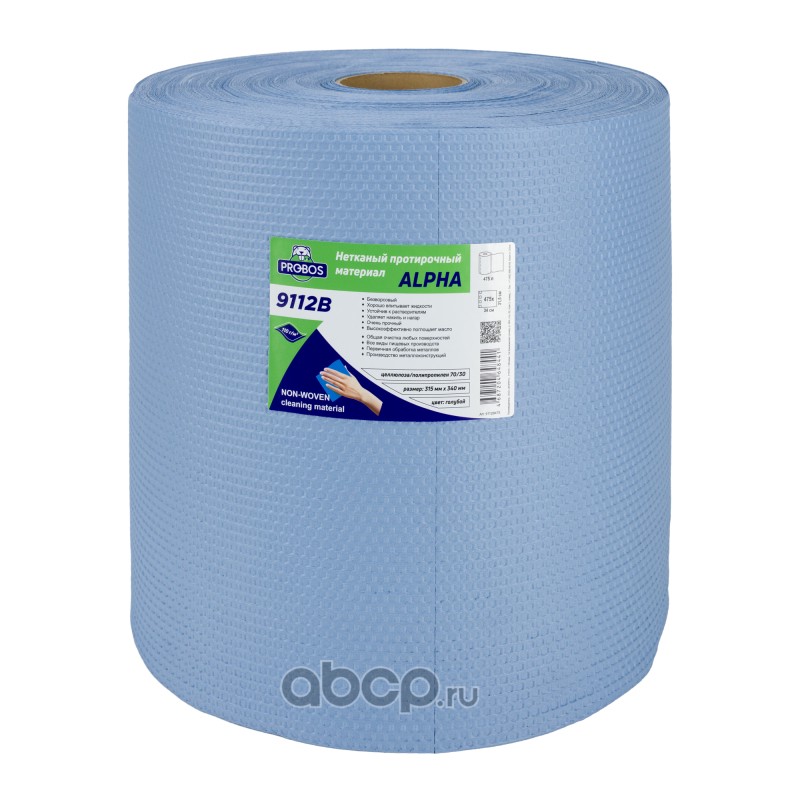 Нетканый протирочный материал ALPHA 9112B, 110г/м2, голубой, сотовое тиснение, 32х34см, 475 листов в рулоне