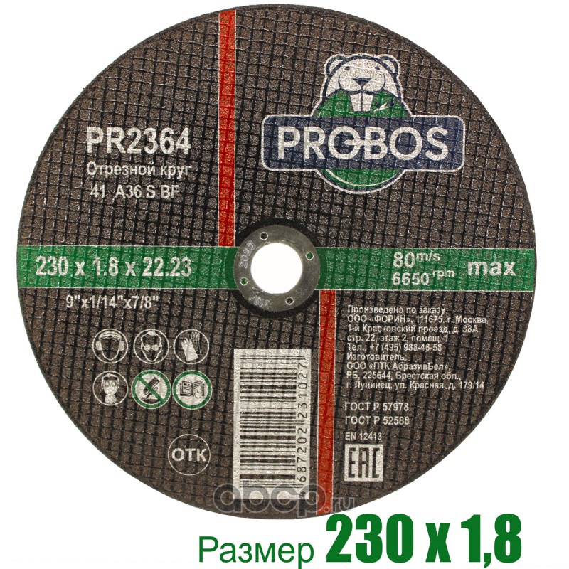Круг отрезной абразивный 230х1,8х22,23