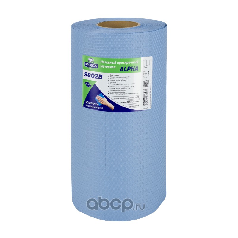 Нетканый протирочный материал ALPHA 9802B, 80г/м2, голубой, сотовое тиснение, 32х34см, 125 листов в рулоне