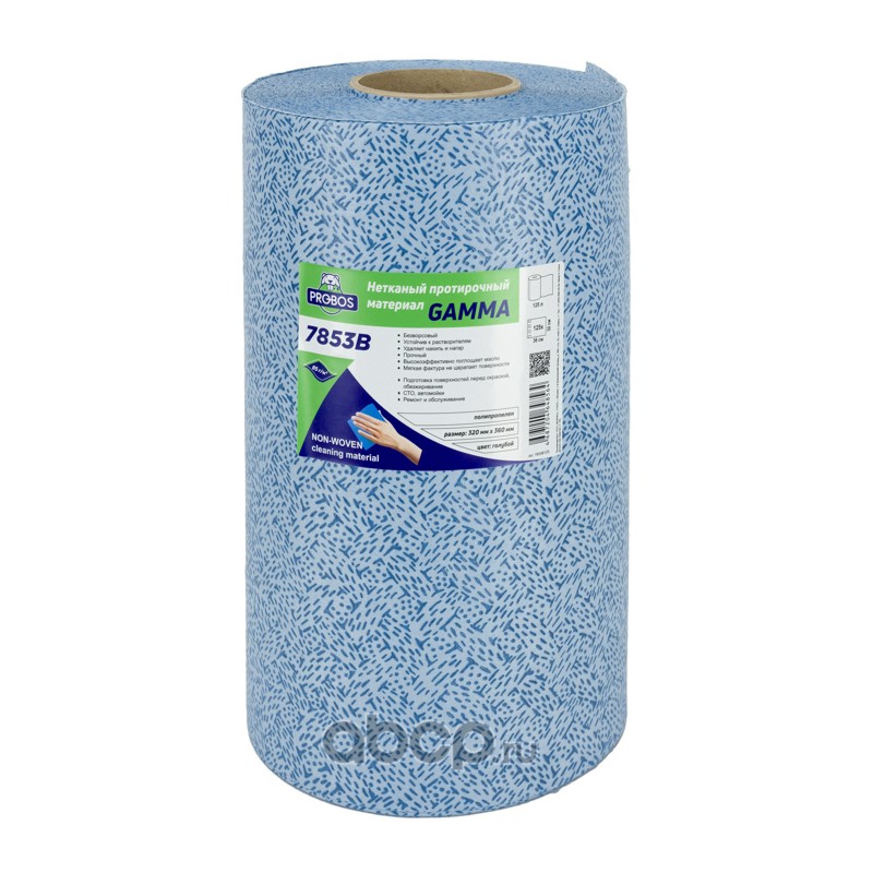 Нетканый протирочный материал GAMMA 7853B, 85г/м2, голубой, V-тиснение, 32х36см, 125 листов в рулоне