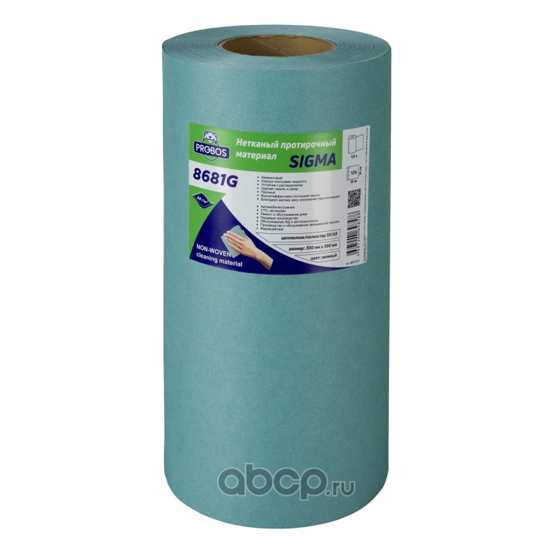 Нетканый протирочный материал SIGMA 8681G, 68г/м2, зеленый, 30х38см, 125 листов в рулоне