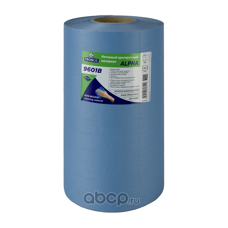 Нетканый протирочный материал ALPHA 9601B, 60г/м2, голубой, 32х34см, 220 листов в рулоне