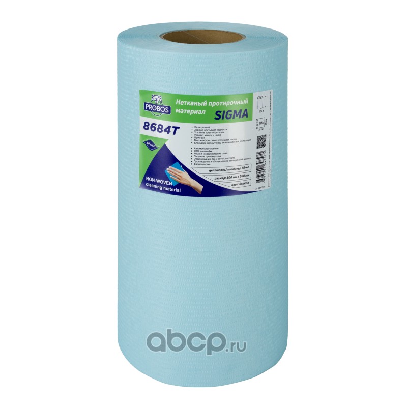 Нетканый протирочный материал SIGMA 8684T, 68г/м2, бирюзовый, креп-тиснение, 30х38см, 125 листов в рулоне