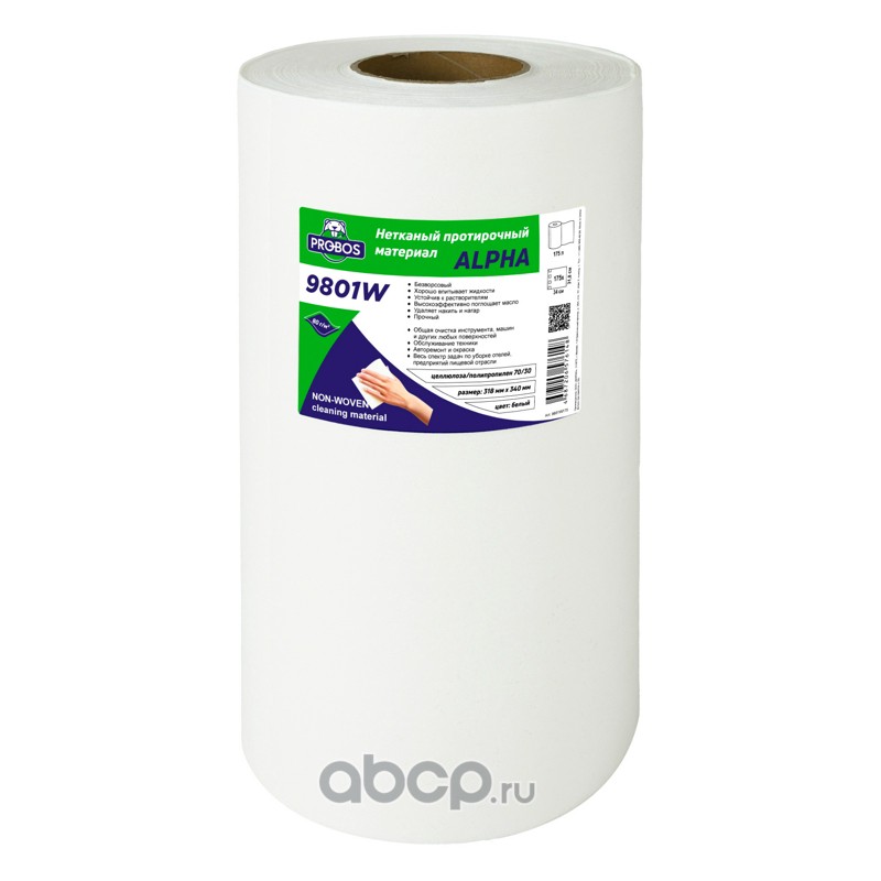 Нетканый протирочный материал ALPHA 9801W, 80г/м2, белый, гладкое тиснение, 32х34см, 175 листов в рулоне