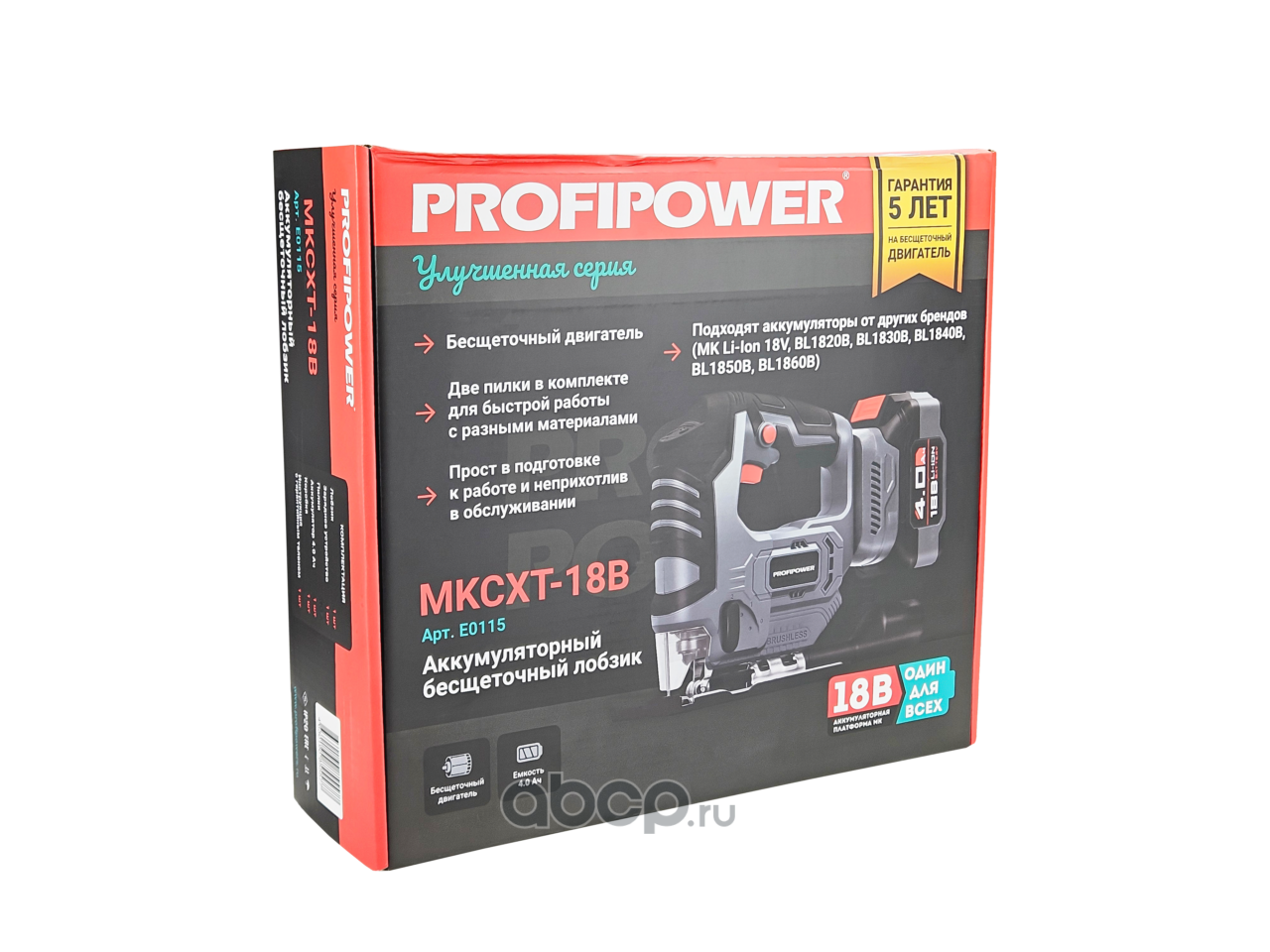 | PROFIPOWER | E0115 | Аккумуляторный бесщеточный лобзик MKCXT-18B (18В,Li-ion-1шт, 4.0Ач, 0-2400ход/мин, З/У, в коробке) | ||