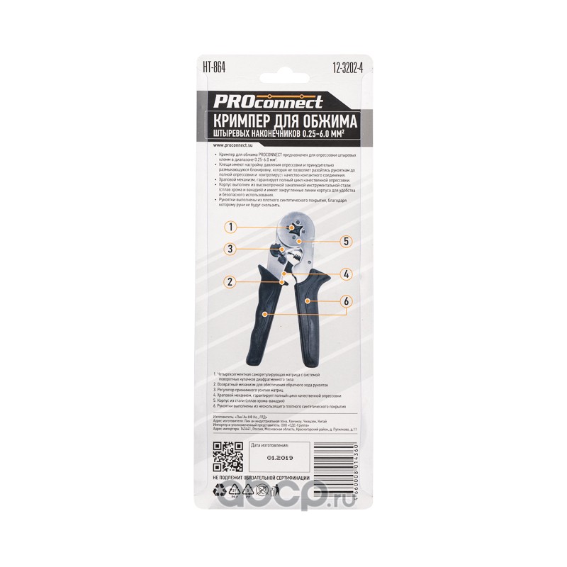 | PROconnect | 1232024 | Кримпер PROconnect HT-864 для обжима штыревых наконечников 0.25-6.0 мм² | ||