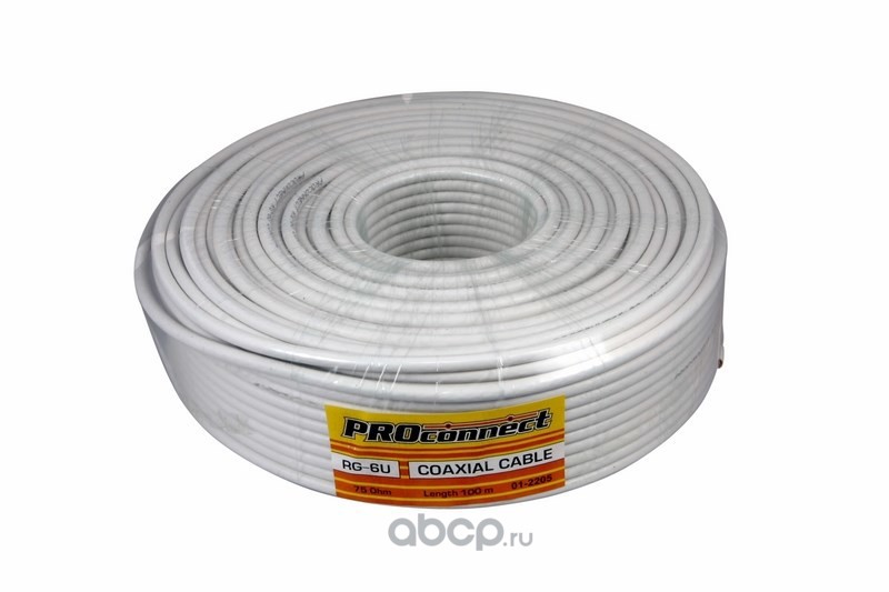 | PROconnect | 012205 | Кабель коаксиальный PROconnect RG-6U, 75 Ом, CCS/Al/Al, 48%, бухта 100 м, белый | ||