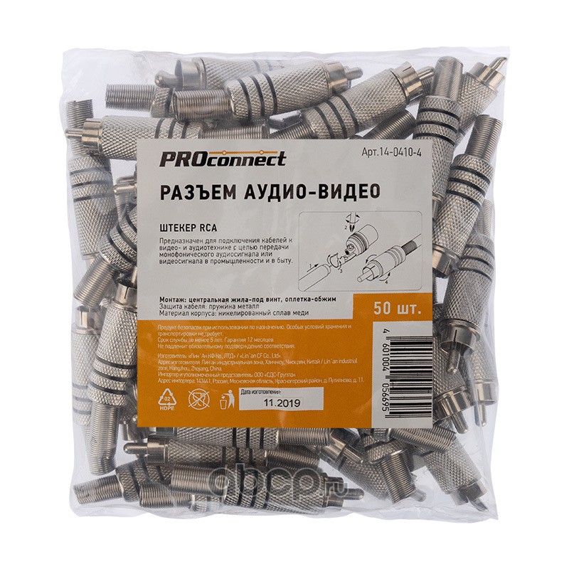 | PROconnect | 1404104 | Разъем штекер RCA металл под винт ZN черный/красный PROCONNECT | ||