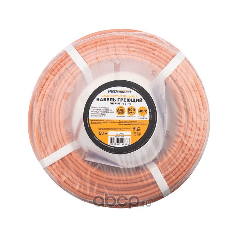 | PROconnect | 510207 | Кабель греющий PROconnect 10MSR-PF саморегулирующийся пищевой, 10 Вт/1 м, 50 м | ||