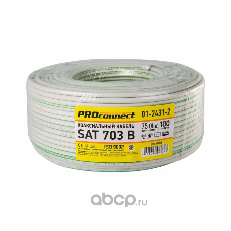 | PROconnect | 0124316 | Кабель коаксиальный PROconnect SAT 703 B, Cu/Al/Cu, 64%, 75 Ом, бухта 100 м, белый | ||
